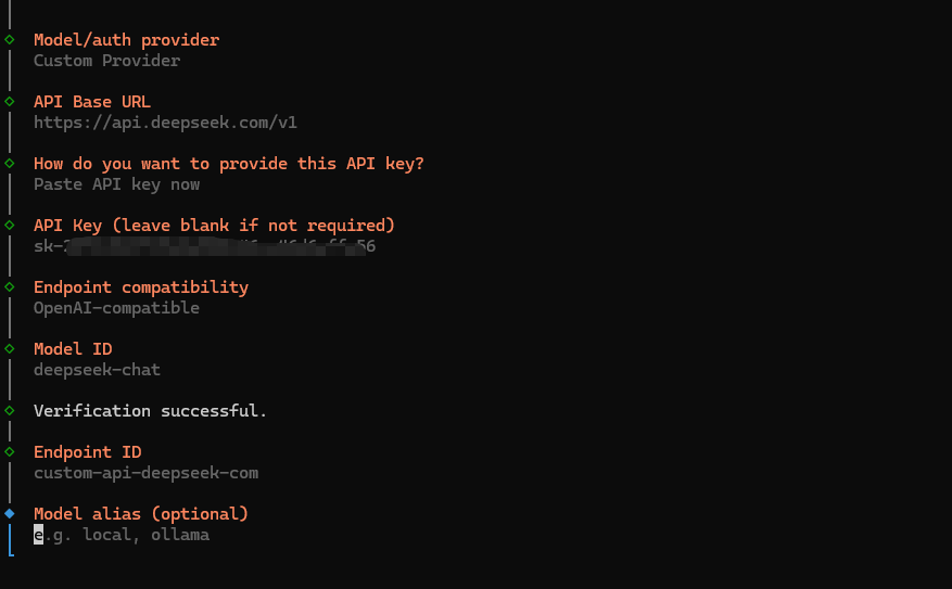 如果需要接入deepseek模型,在Model/auth provider选择 Custom Provider